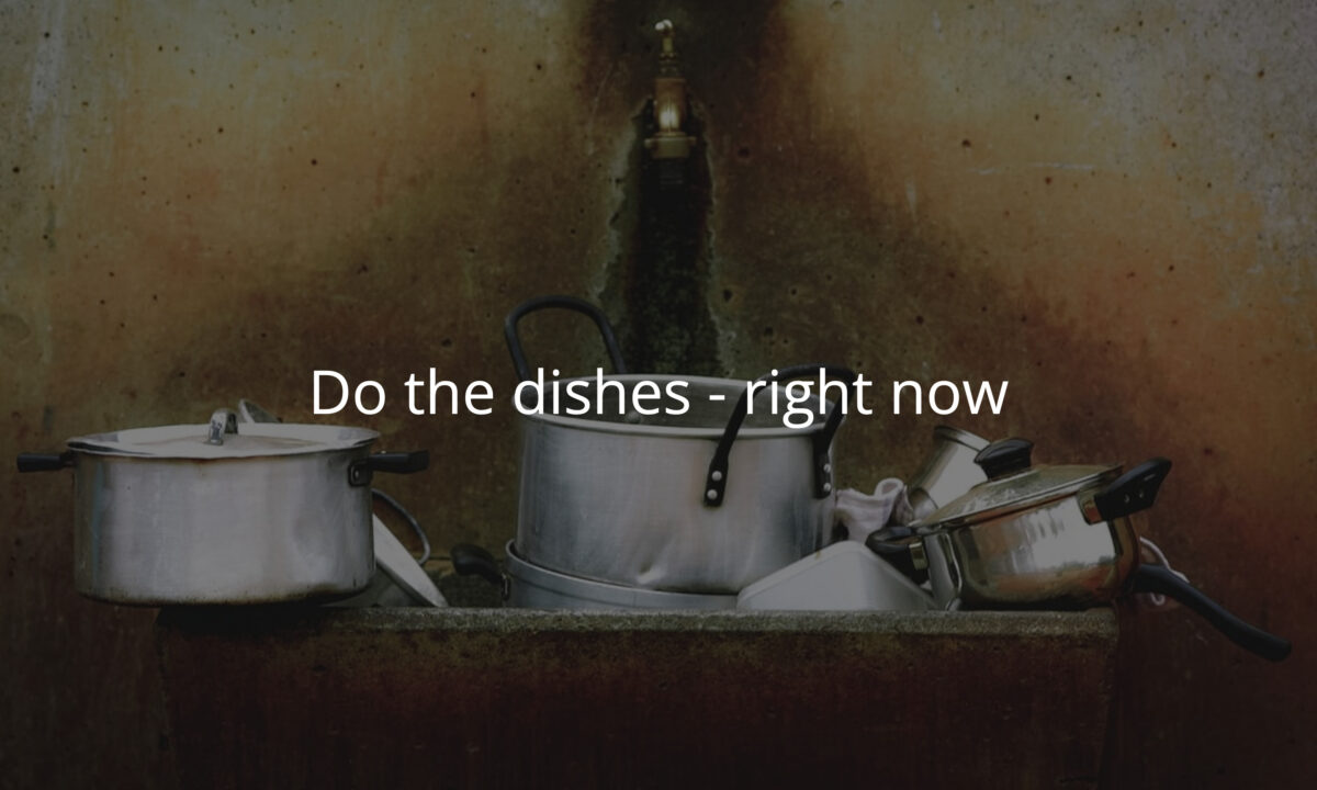 Sadly, “later” was “rapidly before guests come over in an hour.” I’d gotten so into the habit of leaving things to pile up that it became a bit of a sport. How high exactly could I stack things before a soggy slice of toast slid onto the floor?